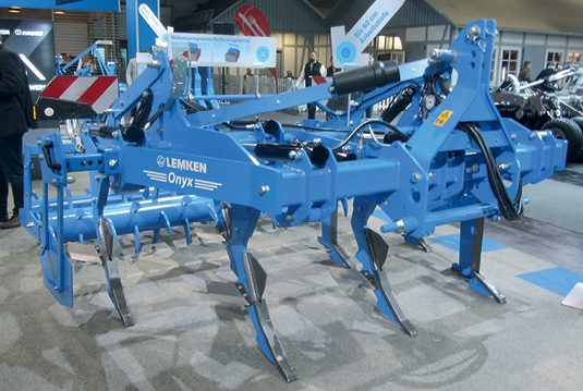 – Ми представили на стенді 40 агрегатів, серед них чимало новинок, більша частина яких актуальна для нашого ринку. Виставка іміджева, тут машини найближчого майбутнього, але деякі, як-от сівалка точного висіву, підуть у серію 2028 року, інші новинки, котрих ніхто ще не бачив, уже замовлені в досить великій кількості й підуть до України з конвеєра, просто з заводу. Ось наш глибокорозпушувач, що максимально актуальний для ринку України. Напевно, для когось це менш розумна, менш інтелектуальна машина, але для нас вона критично актуальна, адже все більше купують машин безвідвальної технології, які працюють на велику глибину. Від LEMKEN аграрії давно просили не тільки плуги, а ще й глибокорозпушувач – й ось він з’явився, італійського типу з назвою Онікс, 3 і 4 м захвату, 7 і 9 лап відповідно. Висота рами в Онікса 90 см, відстань між балками 84 см, тобто це досить потужна машина, це тяжка артилерія у своїй категорії. Відстань між лапами – 42,5 см. Онікс може бути оснащений автоматичною гідравлічною системою захисту від перевантаження, і тут ми перші в класі. Гідравлічний захист від перевантаження коливається в межах від 700 до 1400 кг. Найближчий наш конкурент на ринку мав поріг тільки 1300 кг. Ми ж рухаємося з заділом на майбутнє. На агрегаті може бути два типи лап: лапа ОМ для змішування (працює на глибину від 25 до 40 см) і лапа OL для розпушення, що може працювати на глибині від 30 до навіть 60 см як із крильцями, так і без них.